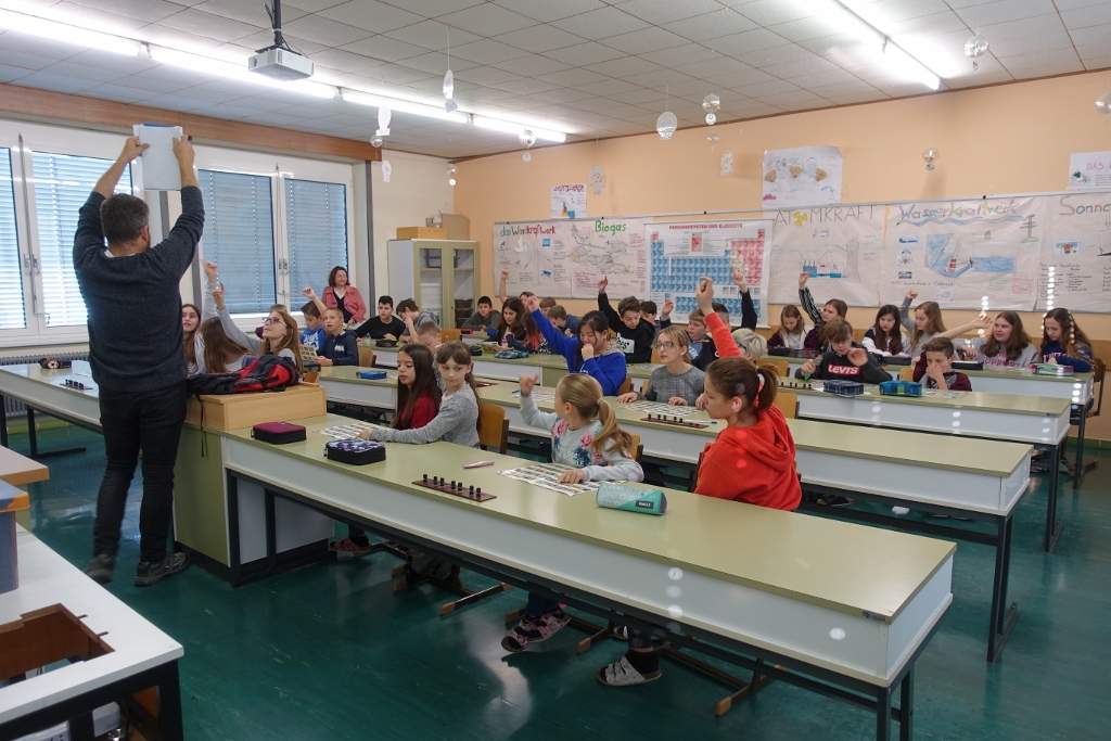 Der Kirschbaum blüht schon im Schulgarten und die Kinder der 2a und 2b warten gespannt im Physiksaal. Wen hat Frau Lehrerin Monika Koglmann hier eingeladen? Die Schmetterlings- und Feuchtwiesen-Forscher! Die Kinder kennen schon allerhand Falter und ereifern sich beim Bestimmungsquiz. Jetzt geht das große Warten los: welche der Puppen wird wohl zuerst schlüpfen?