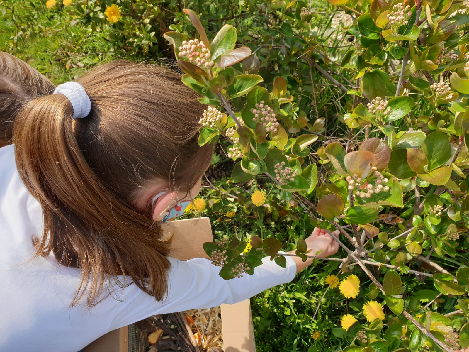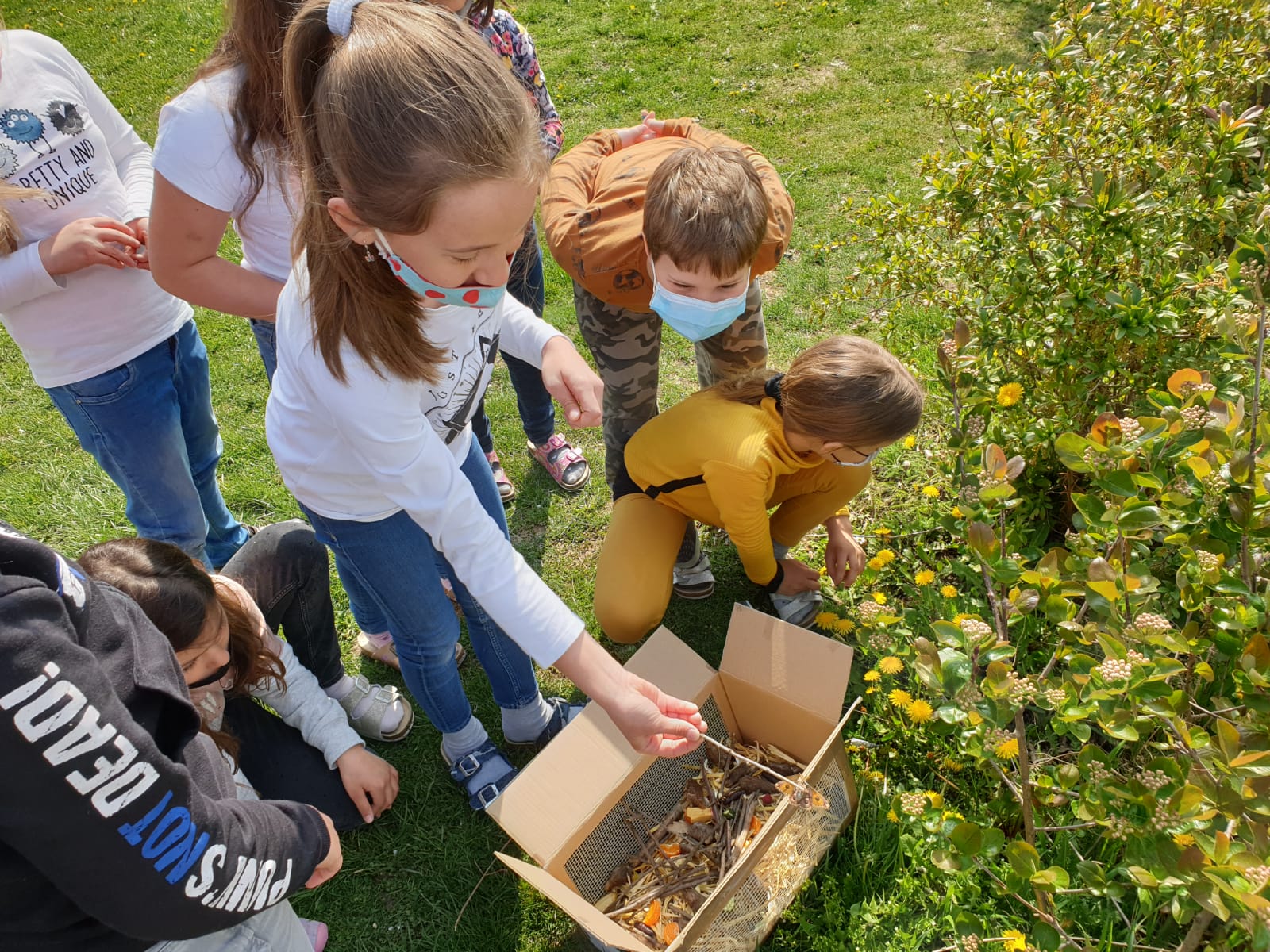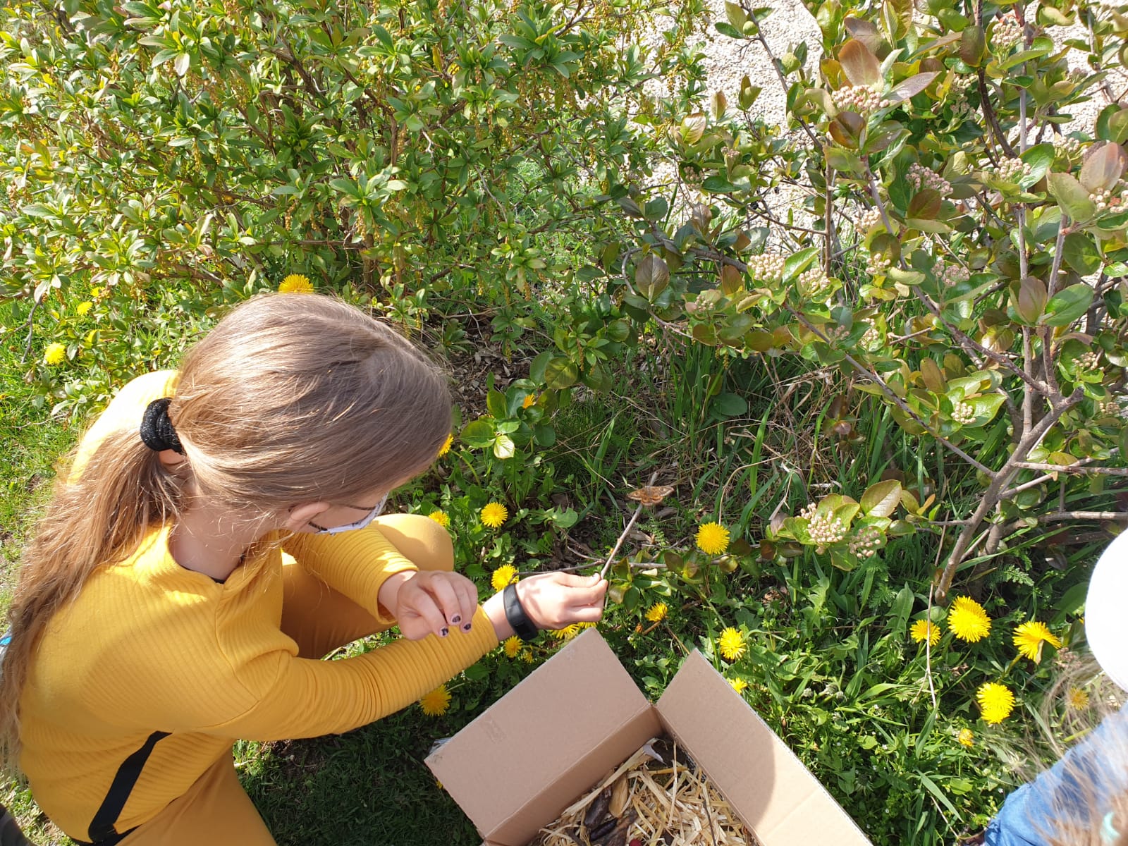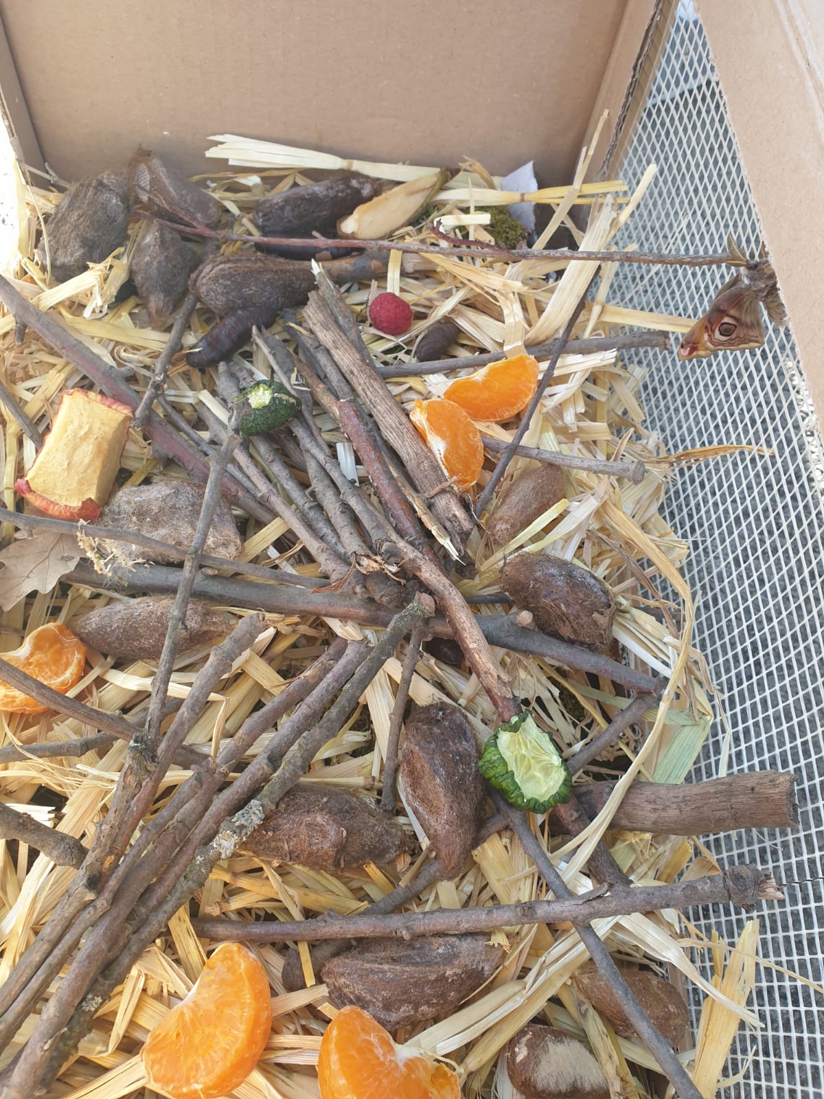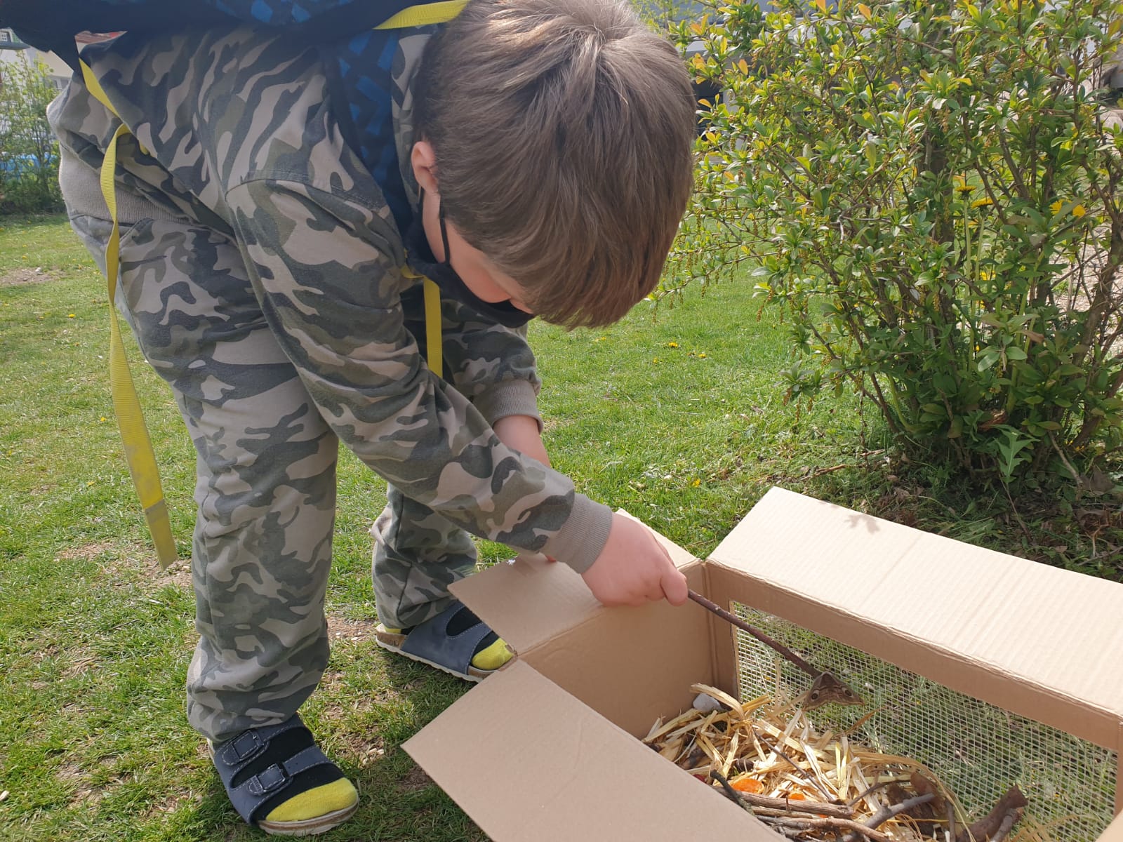 Das ist die Frage! Die Kinder waren ganz eifrig am Bestimmen – und bald war das Geheimnis gelüftet: zuerst schlüpfte das Kleine, und jetzt das Wiener Nachtpfauenauge! Das ist ja riesig! „Die Kinder waren sehr aufgeregt, es ist echt spannend für uns!“ berichtet Claudia Ostermayer aus der 3. Klasse. Sehr behutsam wurden alle im Freien ausgesetzt. Und dann tauchte plötzlich das Landkärtchen auf! „Wie der wohl hierher kam?“ Aus der winzigen Puppe geschlüpft!