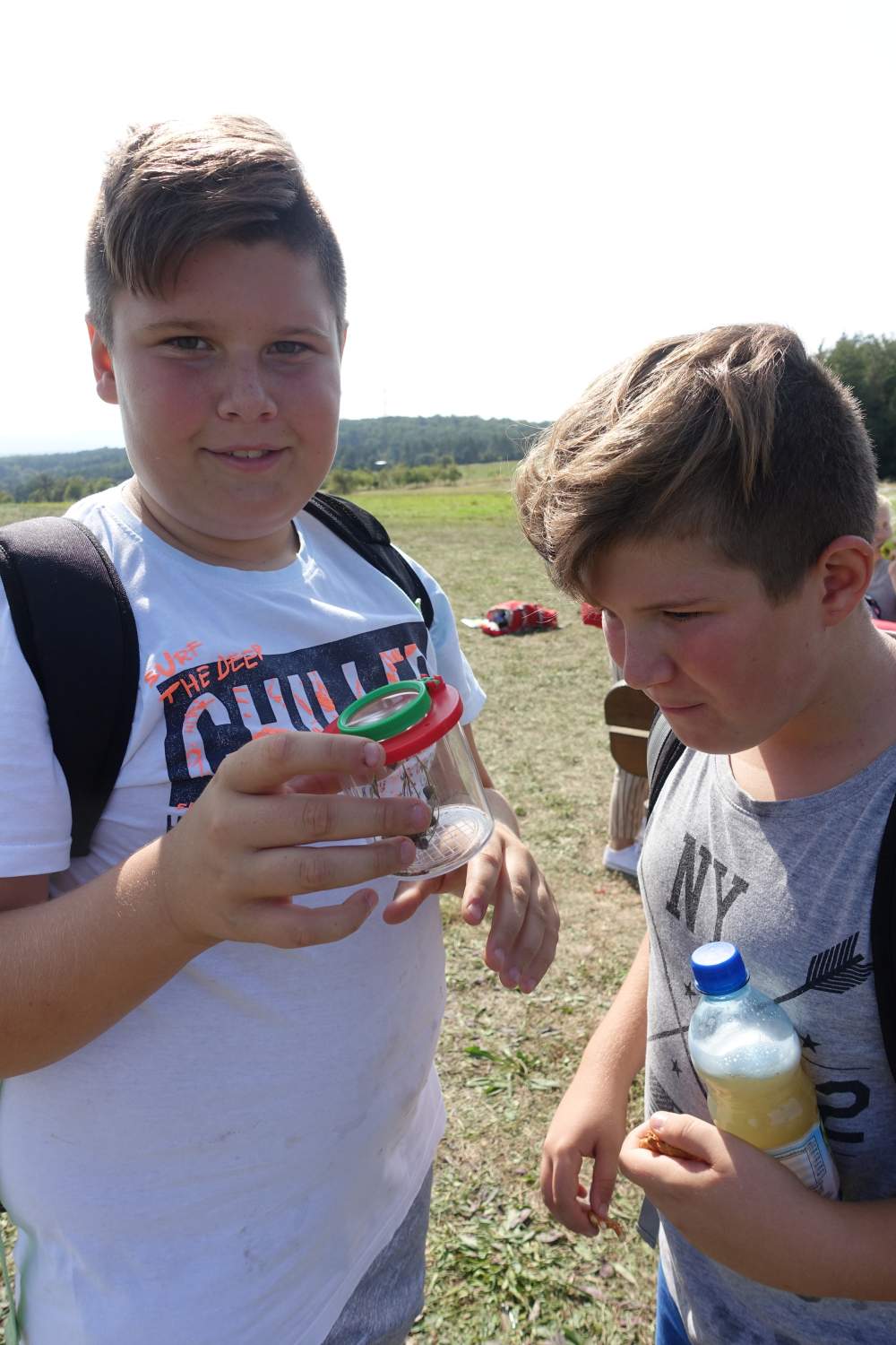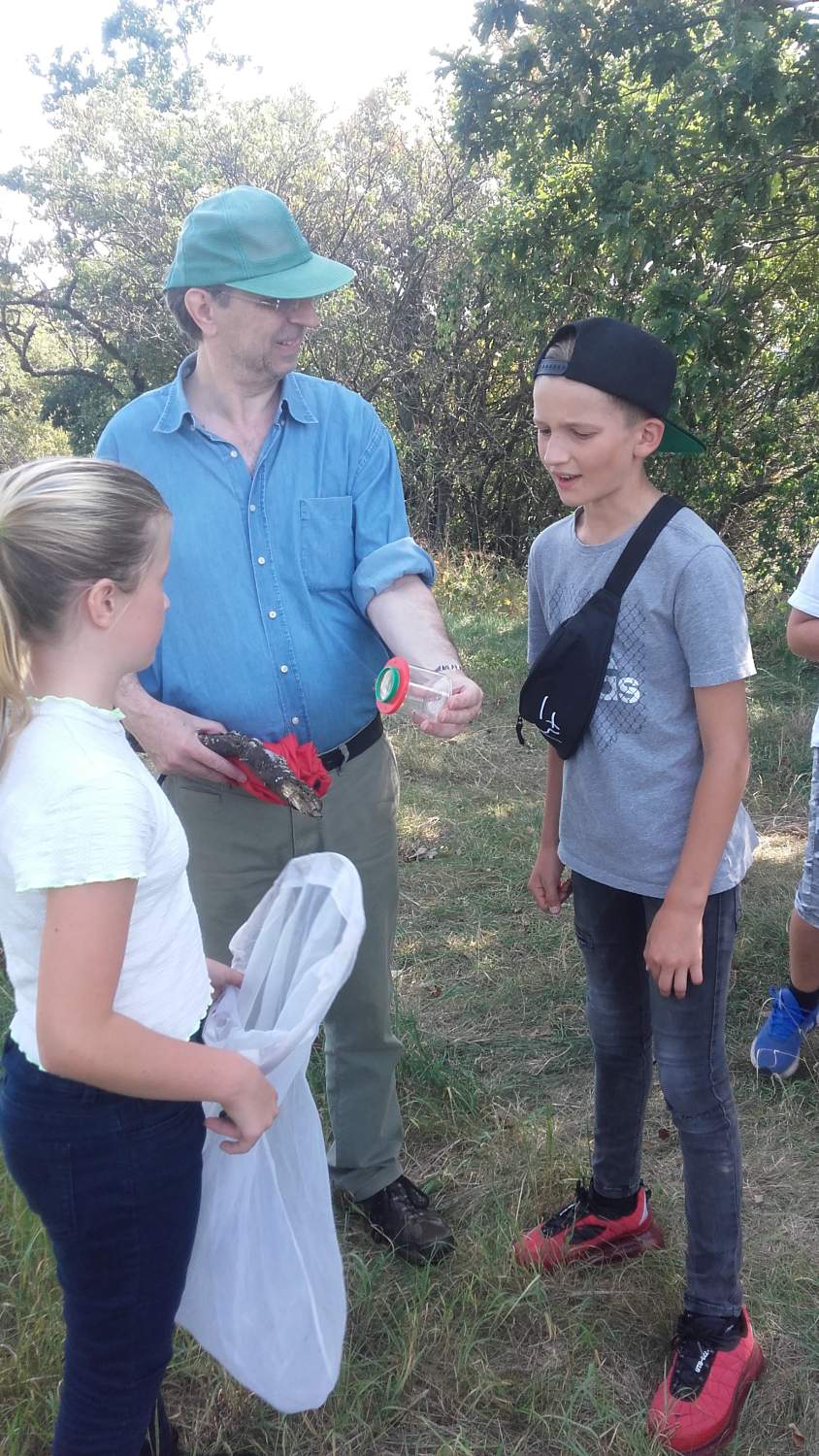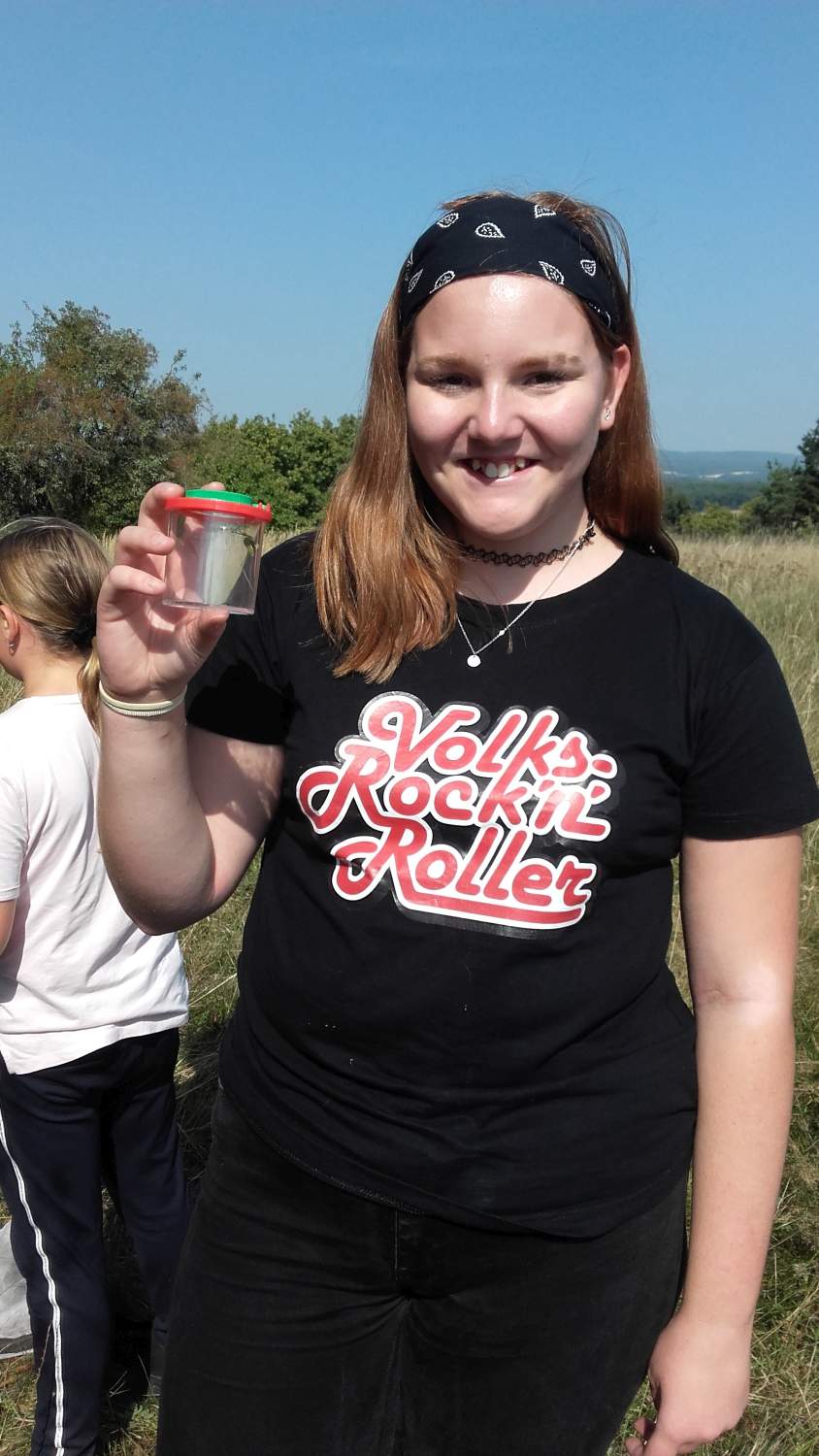 Die Schüler/innen der Mittelschule Stoob hielten gebührenden Respektabstand, als sie bei ihrer ersten Naturvielfalt-Rallye am Noplerberg/Biri einen Dornfinger entdeckten! Diese Spinne mit den beeindruckend großen Cheliceren (Kieferklauen) ist tatsächlich die einzige Giftspinne in Österreich, deren Biss richtig weh tut (ähnlich einem Bienenstich). Alle anderen heutigen Funde – 56 weitere Tier- und Pflanzen-Arten!! – ließen sich einordnen zwischen harmlos (z.B. die Gottesanbeterin) und lecker (die verschiedenen Obstsorten!). Bürgermeister Stutzenstein ist zu Recht stolz auf die Naturvielfalt am Biri und belohnte alle Naturforscher/innen mit leckerem Biri-Streuobst-Apfelsaft!