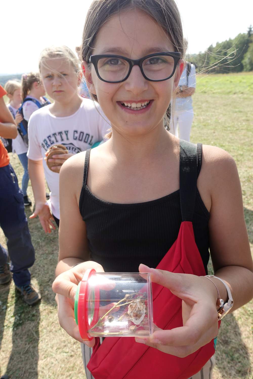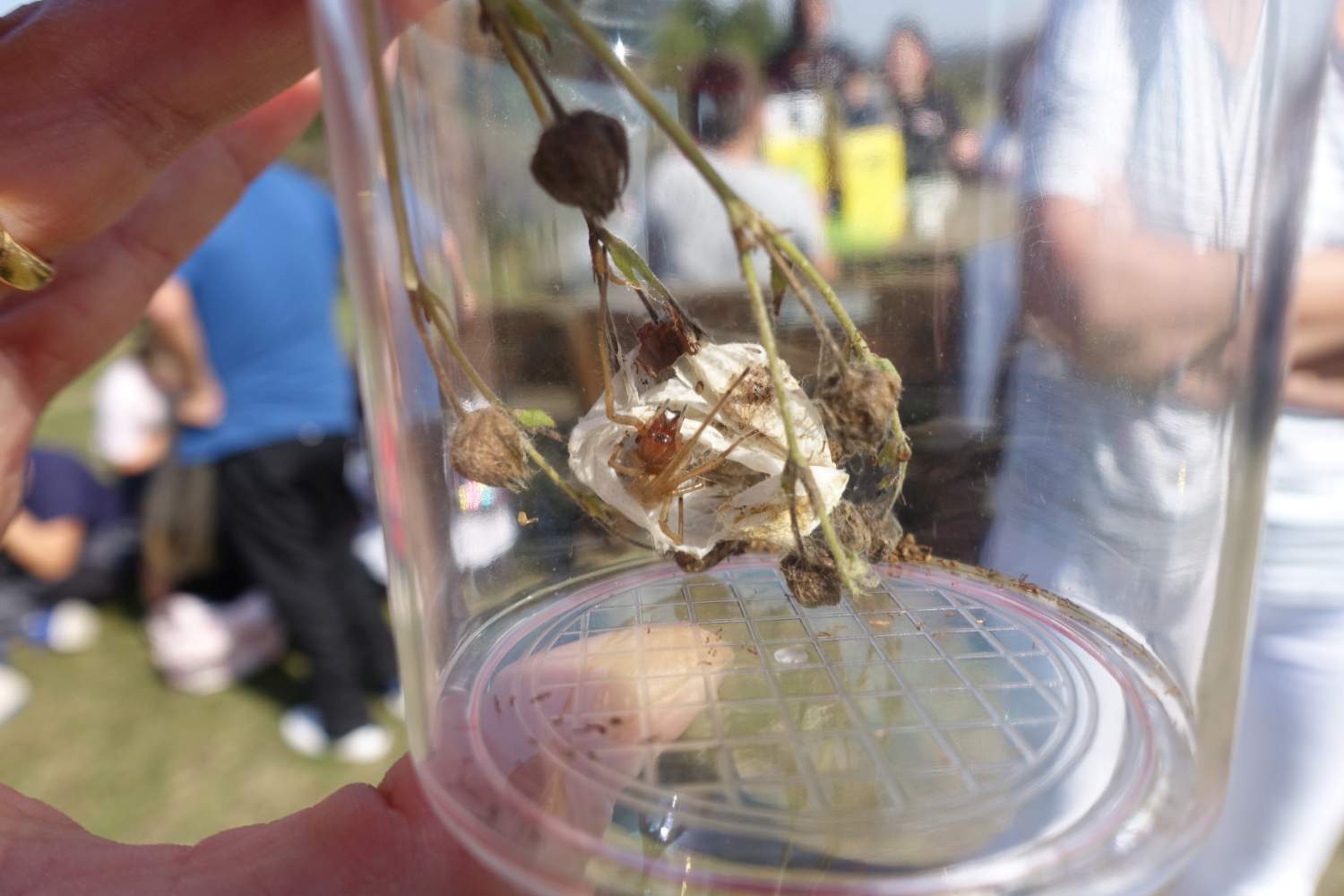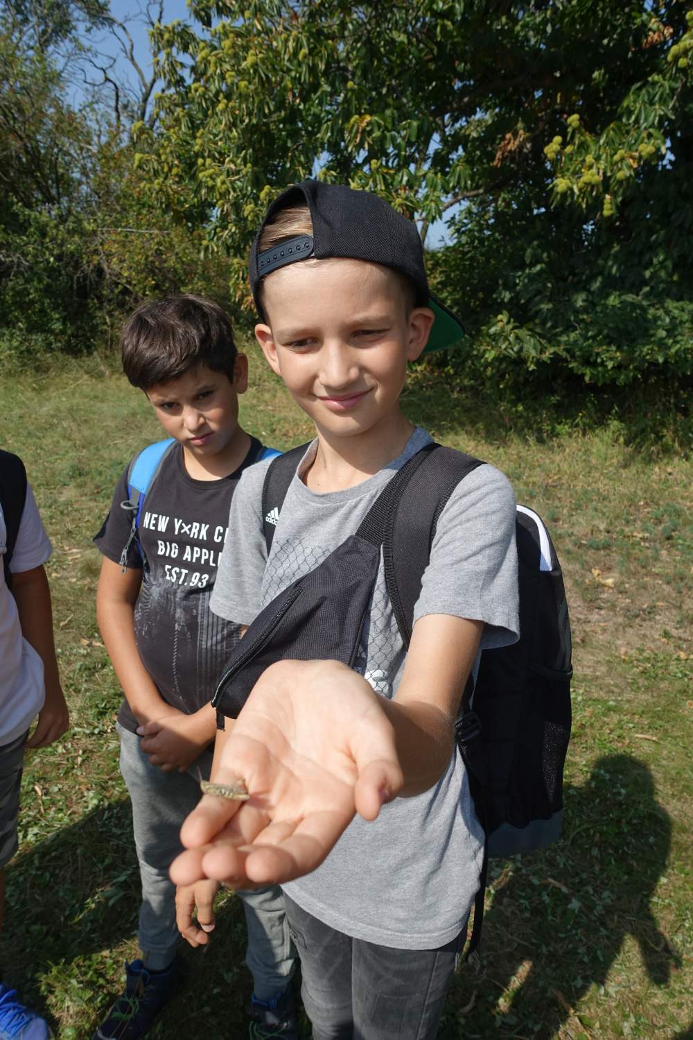 Die Schüler/innen der Mittelschule Stoob hielten gebührenden Respektabstand, als sie bei ihrer ersten Naturvielfalt-Rallye am Noplerberg/Biri einen Dornfinger entdeckten! Diese Spinne mit den beeindruckend großen Cheliceren (Kieferklauen) ist tatsächlich die einzige Giftspinne in Österreich, deren Biss richtig weh tut (ähnlich einem Bienenstich). Alle anderen heutigen Funde – 56 weitere Tier- und Pflanzen-Arten!! – ließen sich einordnen zwischen harmlos (z.B. die Gottesanbeterin) und lecker (die verschiedenen Obstsorten!). Bürgermeister Stutzenstein ist zu Recht stolz auf die Naturvielfalt am Biri und belohnte alle Naturforscher/innen mit leckerem Biri-Streuobst-Apfelsaft!