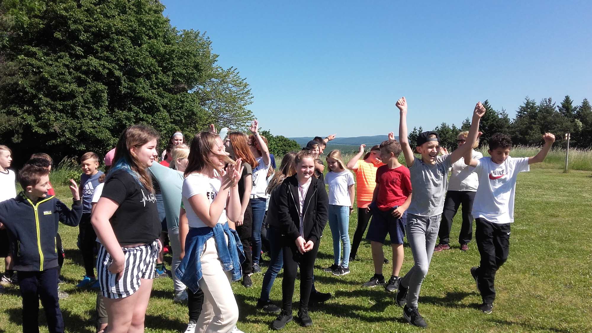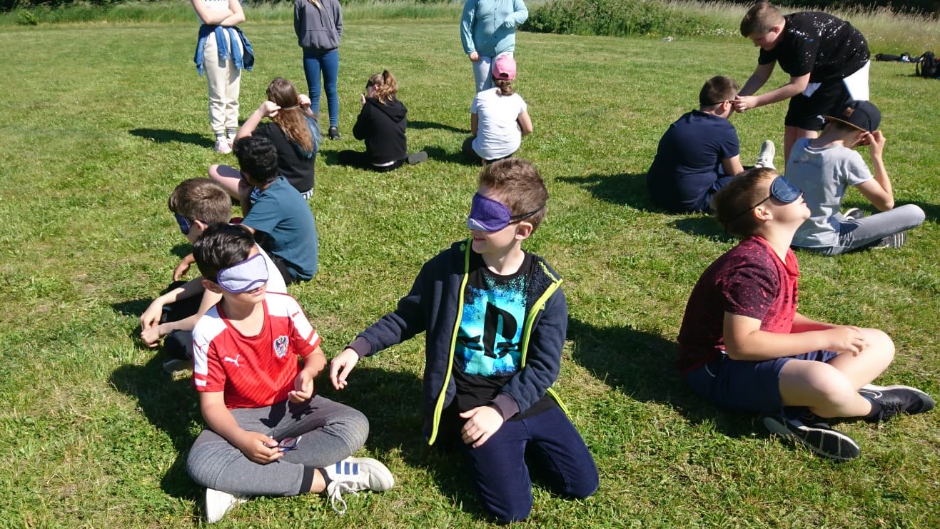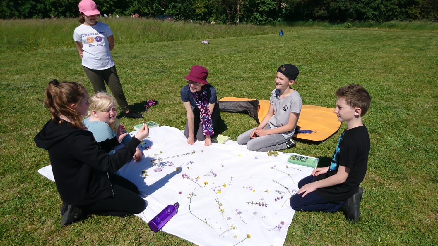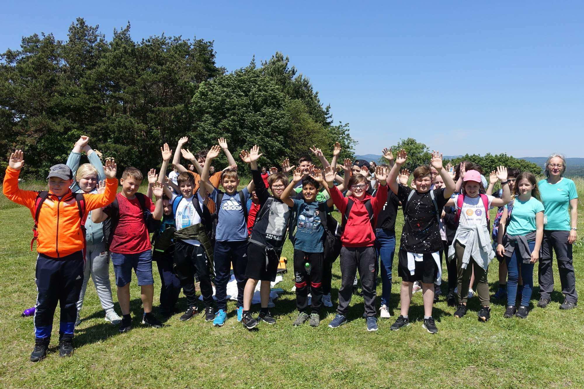 Nachdem im Puppenhaus auch noch der letzte Falter geschlüpft ist – ein Ligusterschärmer – können wir endlich wieder gemeinsam den Biri erkunden! Das Wetter spielt alle Stückerln und entsprechend gut gelaunt und unternehmenslustig sind die 38 Kinder, drei Pädagoginnen und drei Betreuer*innen! Mit Insekten aufspüren, Blumennamen herausfinden, sich von fetten Raupen kitzeln lassen und allerlei anderen Spielen vergeht die Zeit wie im Flug. Die Liste der heute entdeckten Arten ist lange und mit ein wenig Unterstützung identifizieren die Kinder auch weniger bekannte, attraktive Arten wie Weißlinien- und Smaragdspanner oder Mausohr-Habichtskraut rasch!