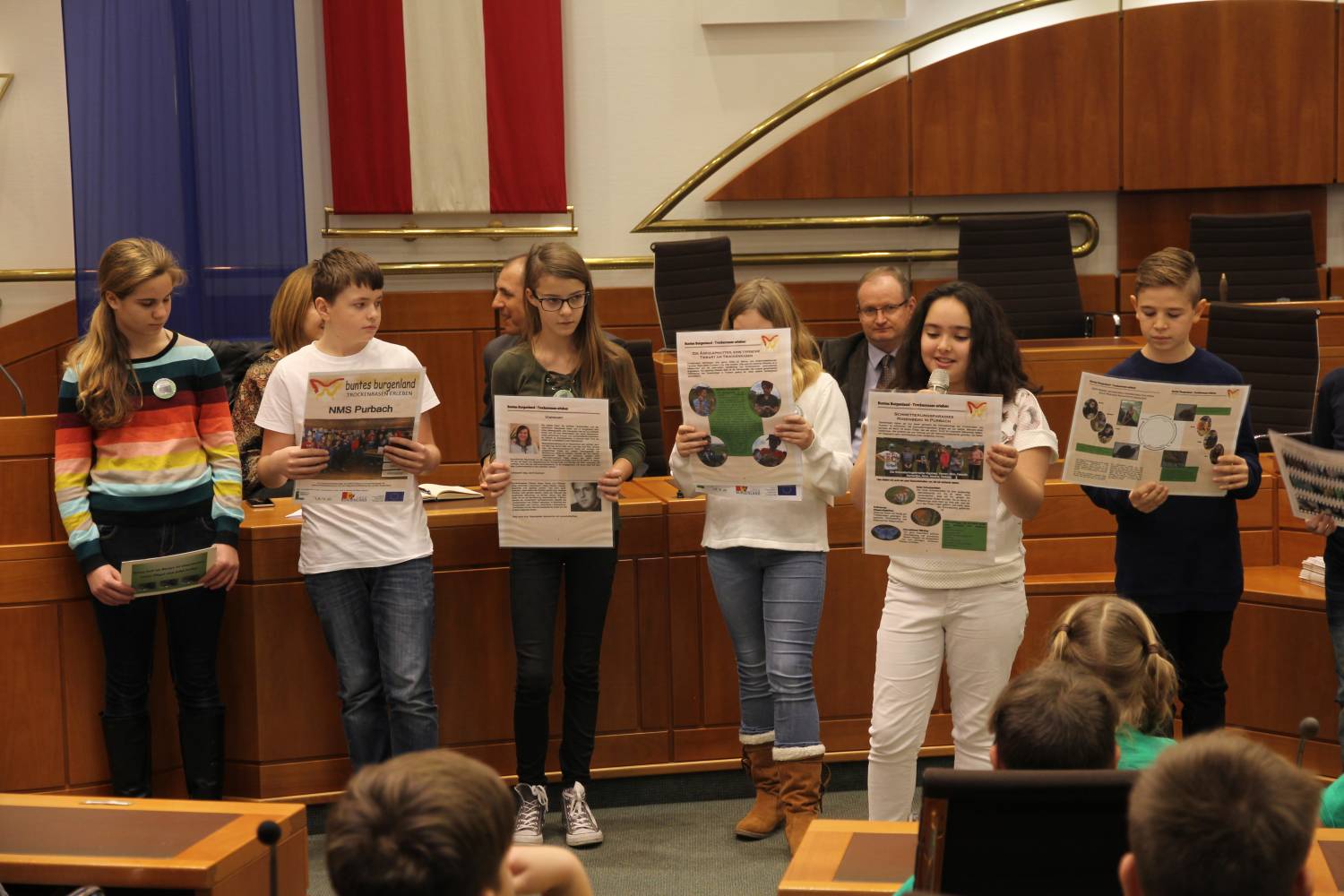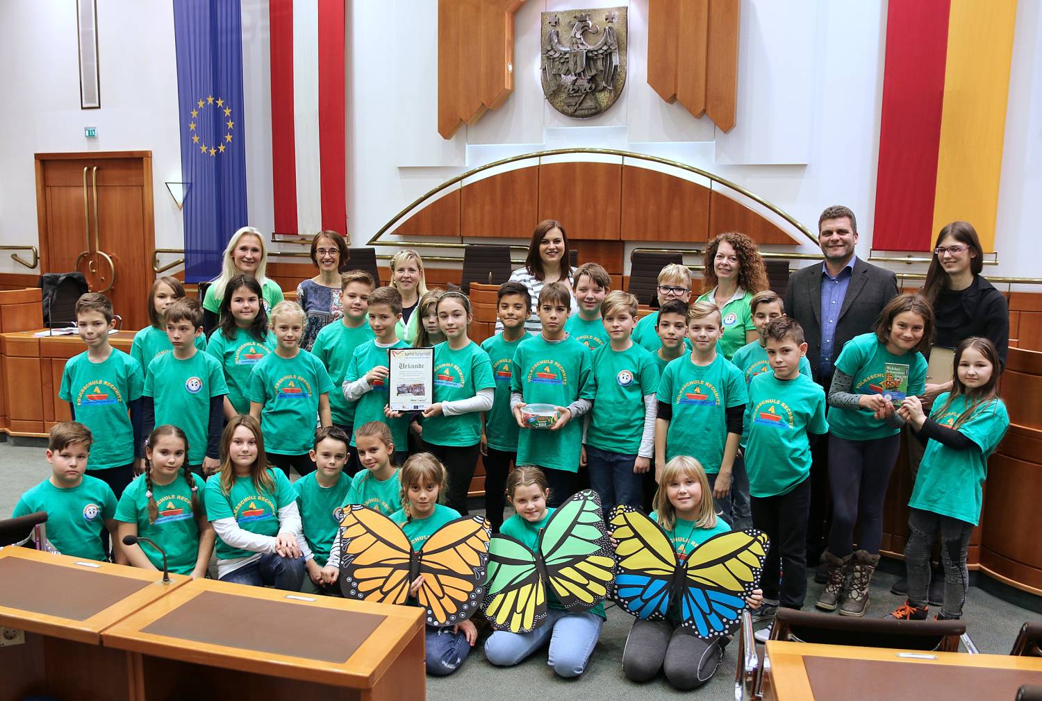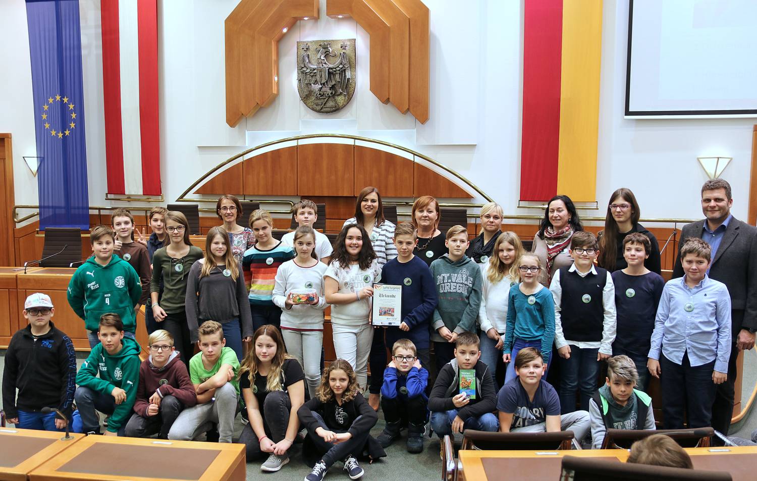 Beim Abschlussevent am 23.11.2017 im Landtagssitzungssaal zeigten die Schülerinnen und Schüler, gemeinsam mit ihren Pädagoginnen, was sie von den Erblebnissen aus diesem Jahr mitgenommen hatten – und was sie drauf hatten: eine ganze Menge! Alle Anwesenden waren von den Präsentationen der Kinder ebenso wie vom Wissen und der Schlagfertigkeit, die sie beim kniffligen Quiz bewiesen, sehr beeindruckt! Landesrätin Eisenkopf: „Ein großer Dank an die Schülerinnen und Schüler, aber vor allem auch an ihre Lehrerinnen und Lehrer und die Naturschutzexperten. Die Begeisterung der Kinder zeigt, dass bei entsprechender Vermittlung die Natur für sie ein sehr spannendes Thema sein kann!“. Sie selbst bekam zu Abschluss noch Flügel verliehen – von den Kindern aus Rechnitz.