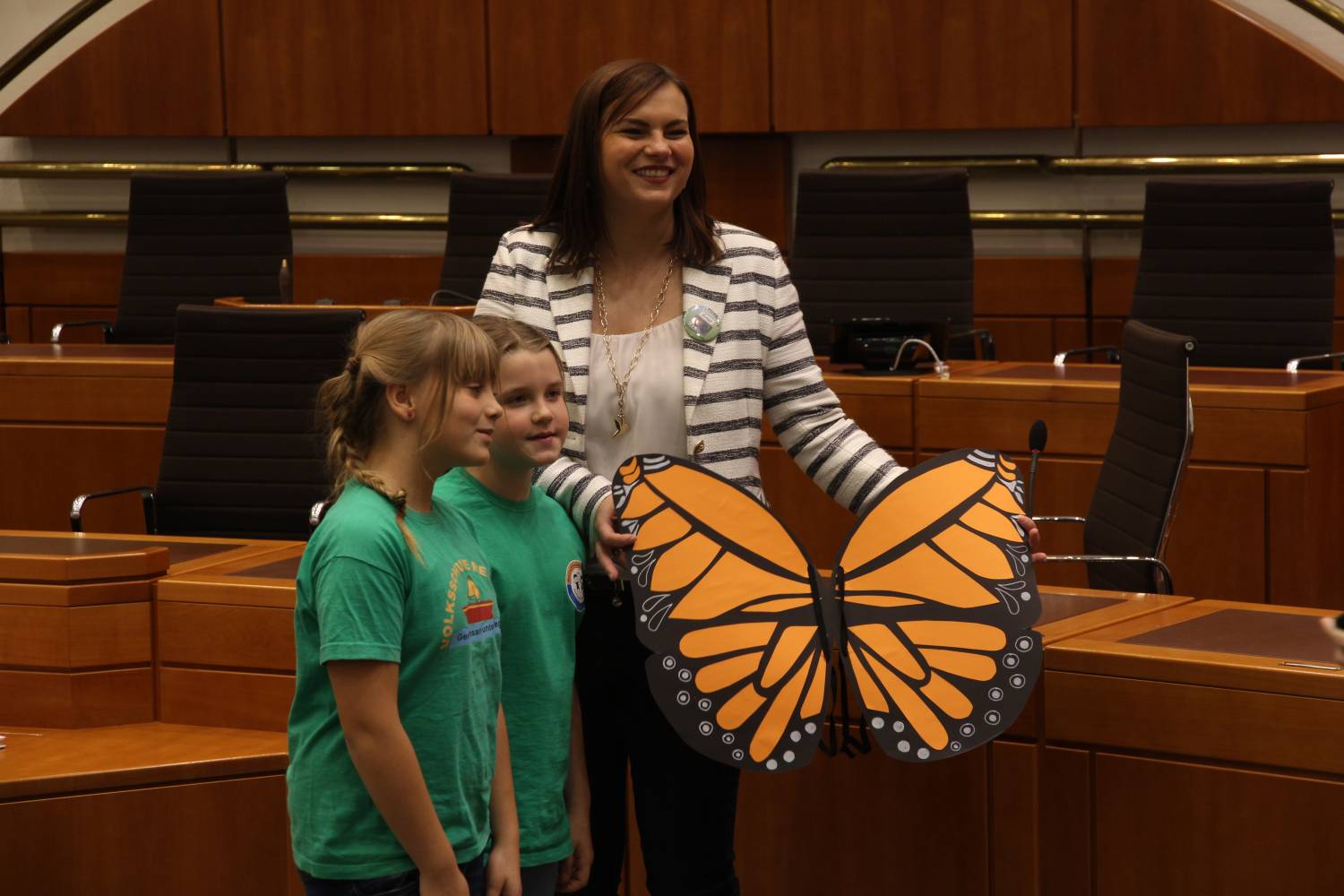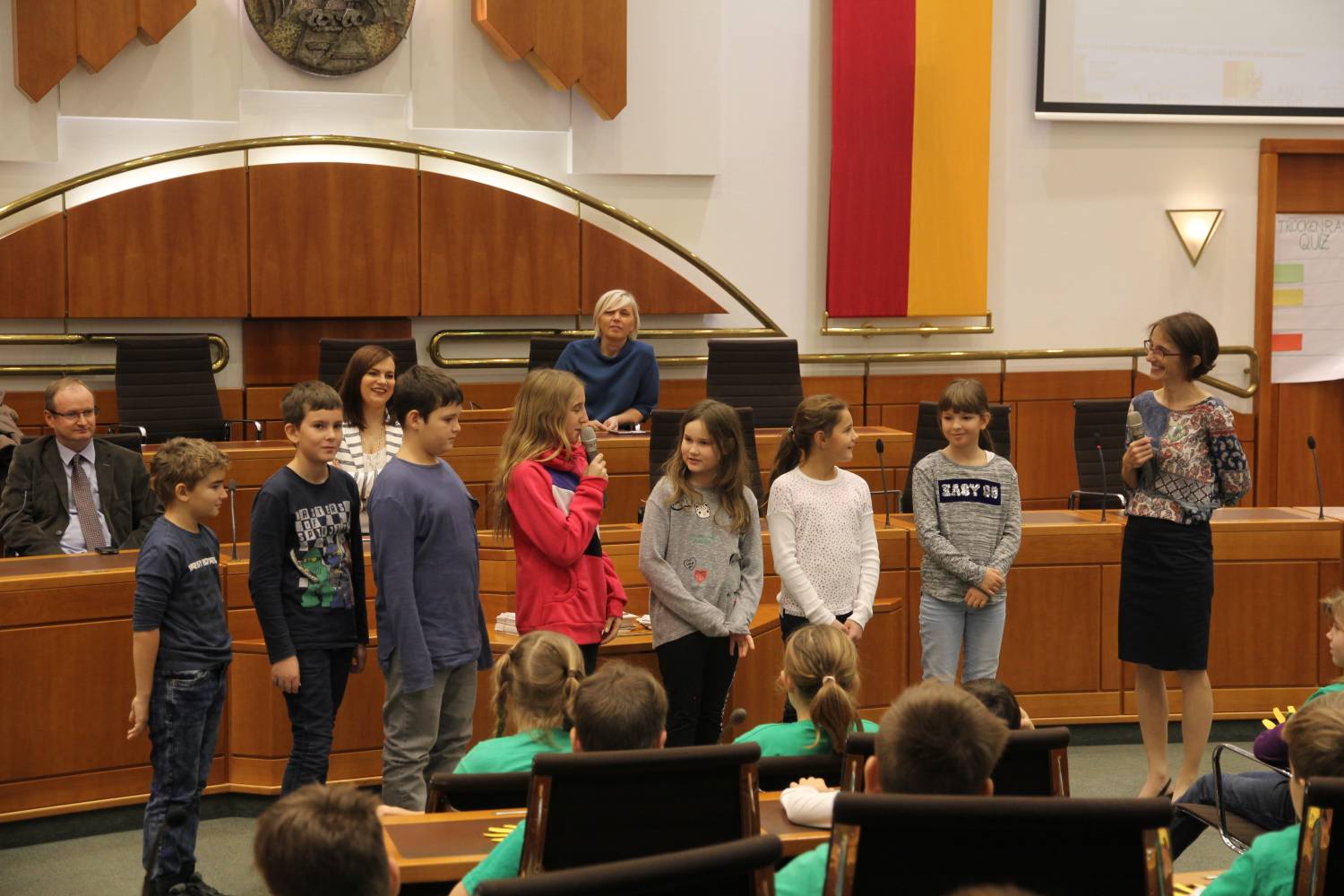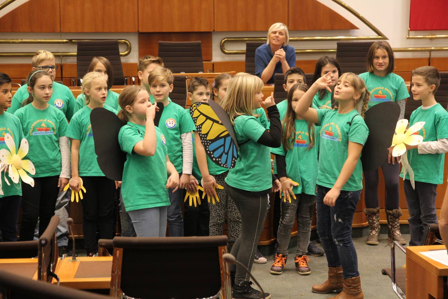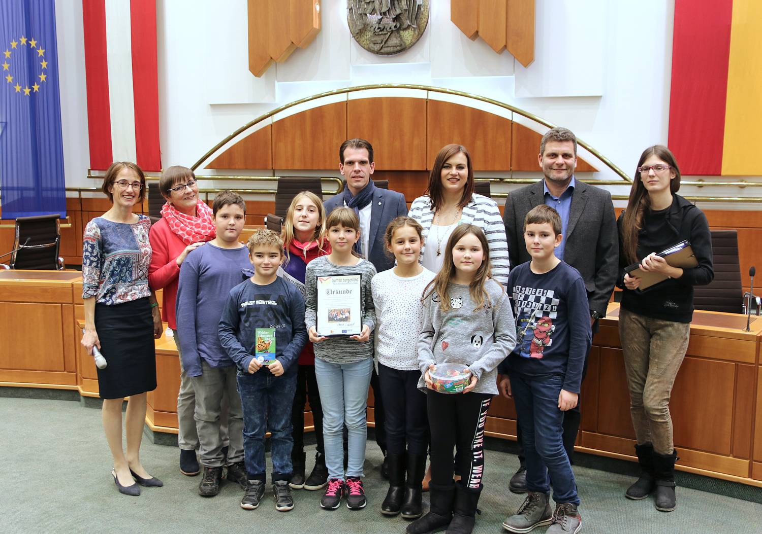 Beim Abschlussevent am 23.11.2017 im Landtagssitzungssaal zeigten die Schülerinnen und Schüler, gemeinsam mit ihren Pädagoginnen, was sie von den Erblebnissen aus diesem Jahr mitgenommen hatten – und was sie drauf hatten: eine ganze Menge! Alle Anwesenden waren von den Präsentationen der Kinder ebenso wie vom Wissen und der Schlagfertigkeit, die sie beim kniffligen Quiz bewiesen, sehr beeindruckt! Landesrätin Eisenkopf: „Ein großer Dank an die Schülerinnen und Schüler, aber vor allem auch an ihre Lehrerinnen und Lehrer und die Naturschutzexperten. Die Begeisterung der Kinder zeigt, dass bei entsprechender Vermittlung die Natur für sie ein sehr spannendes Thema sein kann!“. Sie selbst bekam zu Abschluss noch Flügel verliehen – von den Kindern aus Rechnitz.