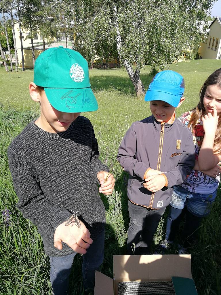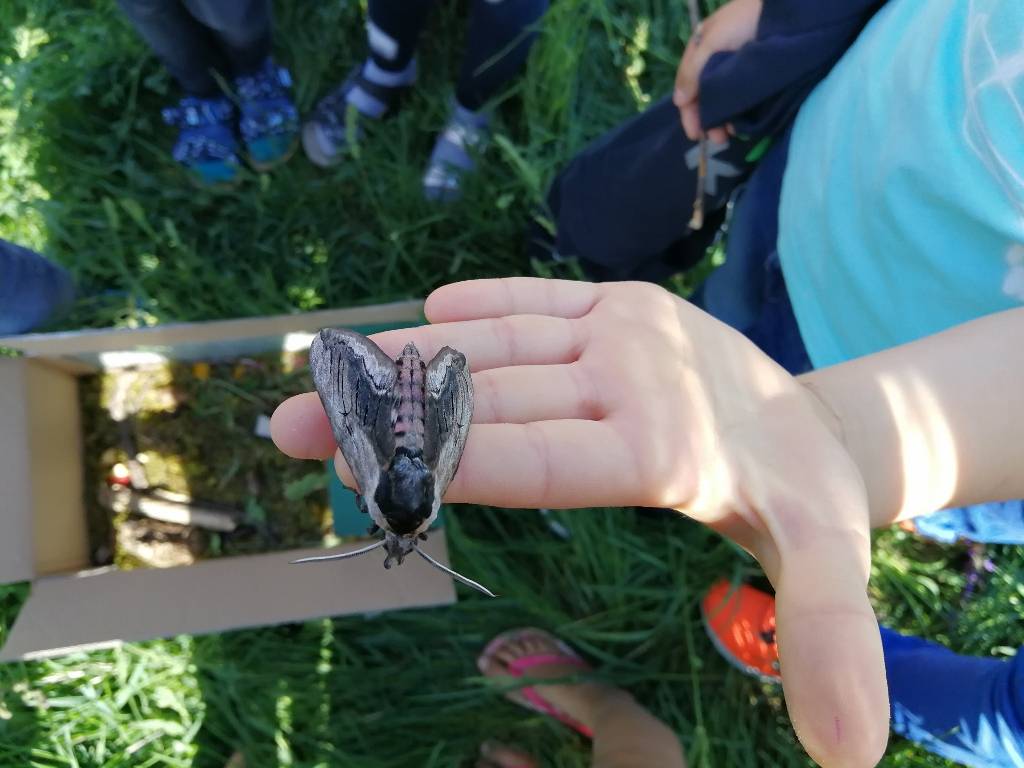 Endlich war es wieder soweit. Die letzten Wochen war nicht viel los in unserem Schmetterlingshaus. Umso größer war heute Morgen die Freude der Kinder in der3b, als sie einen geschlüpften Falter entdeckten - den ersten Ligusterschwärmer! Die Kinder waren aufgrund seiner Größe beeindruckt und konnten es nicht erwarten ihn in die Freiheit zu entlassen!